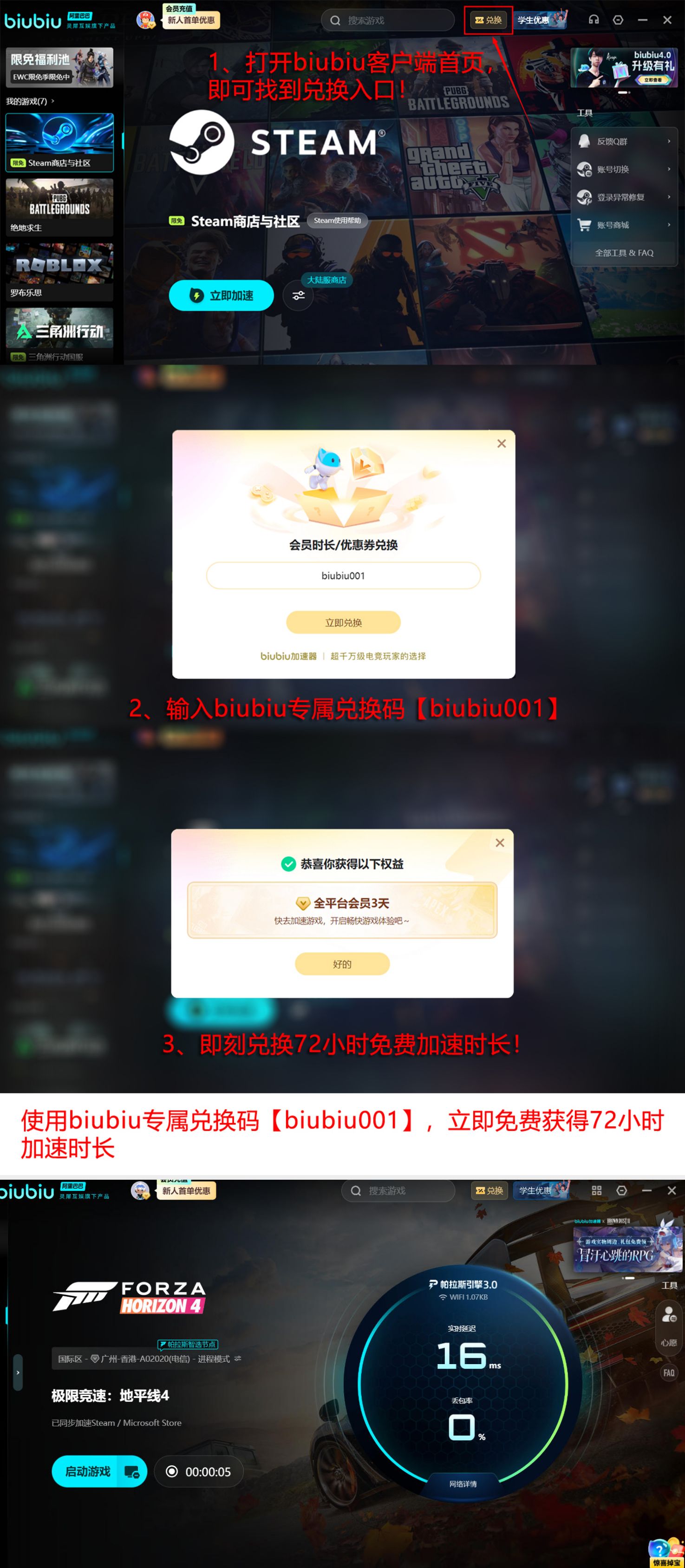 作为PUBG冠军选手小叮当指定加速器,同时也是pero战队官方指定加速工具,加速器的能力早就已经得到了职业选手的认可,印证其在高对抗性、低容错率场景下的可靠性。底层搭载帕拉斯3.0引擎,可实时监测链路抖动、自动切换最优中继节点,并基于历史连接数据预测最佳路由路径,将平均延迟降低40%以上,数据包重传率控制在0.3%以内。目前平台开放限时福利:所有用户输入激活码【biubiu001】即可领取3天免费加速时长;新注册用户额外获赠24小时专属体验权益,叠加使用总计可达96小时。