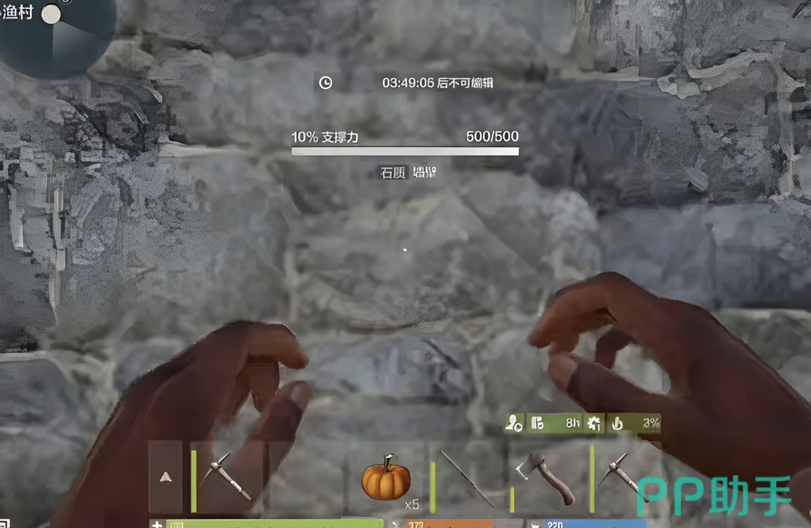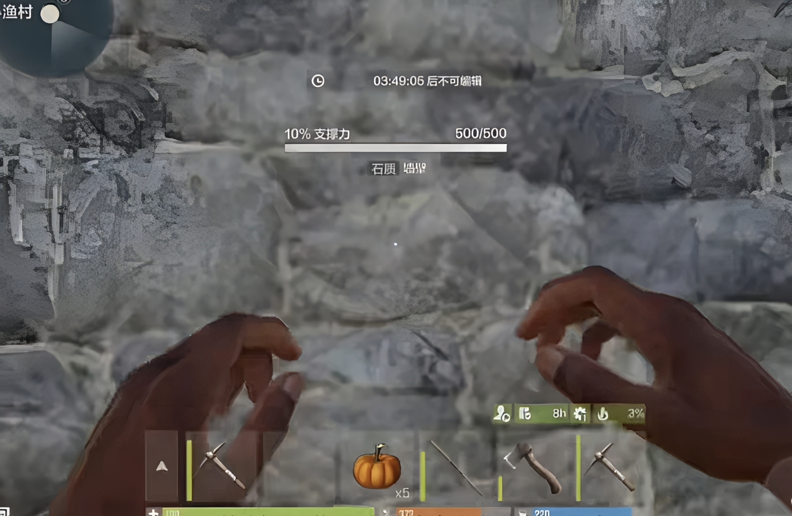 首次进入游戏时,角色处于赤手空拳状态,所有基础物资均需自主获取。开局首要目标是拾取天然石块——其高硬度使其成为首个可交互工具。通过反复击打直径较小的树干,即可高效伐木获取原木资源。随后可利用木材制作三类核心初期装备:斧头(提升砍伐效率)、镐子(用于挖掘矿石与硬质地面)、矛头(提供近战攻击能力),为后续发展奠定坚实基础。