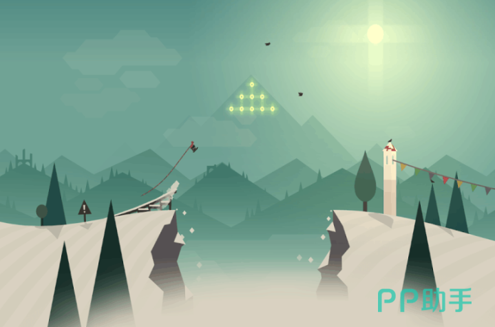 由加拿大独立工作室Snowman开发,2015年首发的无尽滑雪跑酷类作品。操作逻辑极简:点击跳跃、长按触发后空翻、落地自动加速;在特定坡道起跳可衔接滑翔与连招特技。全游戏共设180余关,地形采用程序化生成机制,配合剪影式美术风格与暴雪、流星雨等动态天气特效,构建出高辨识度的视觉体验。