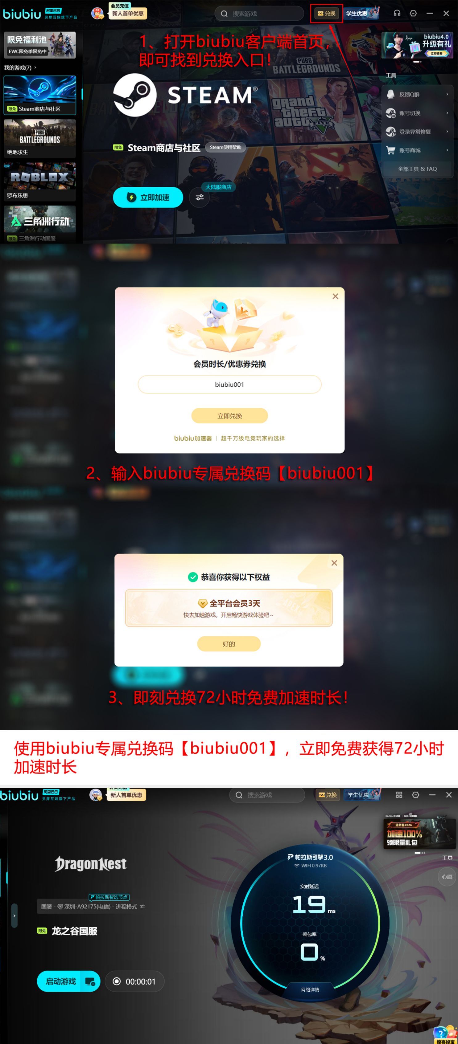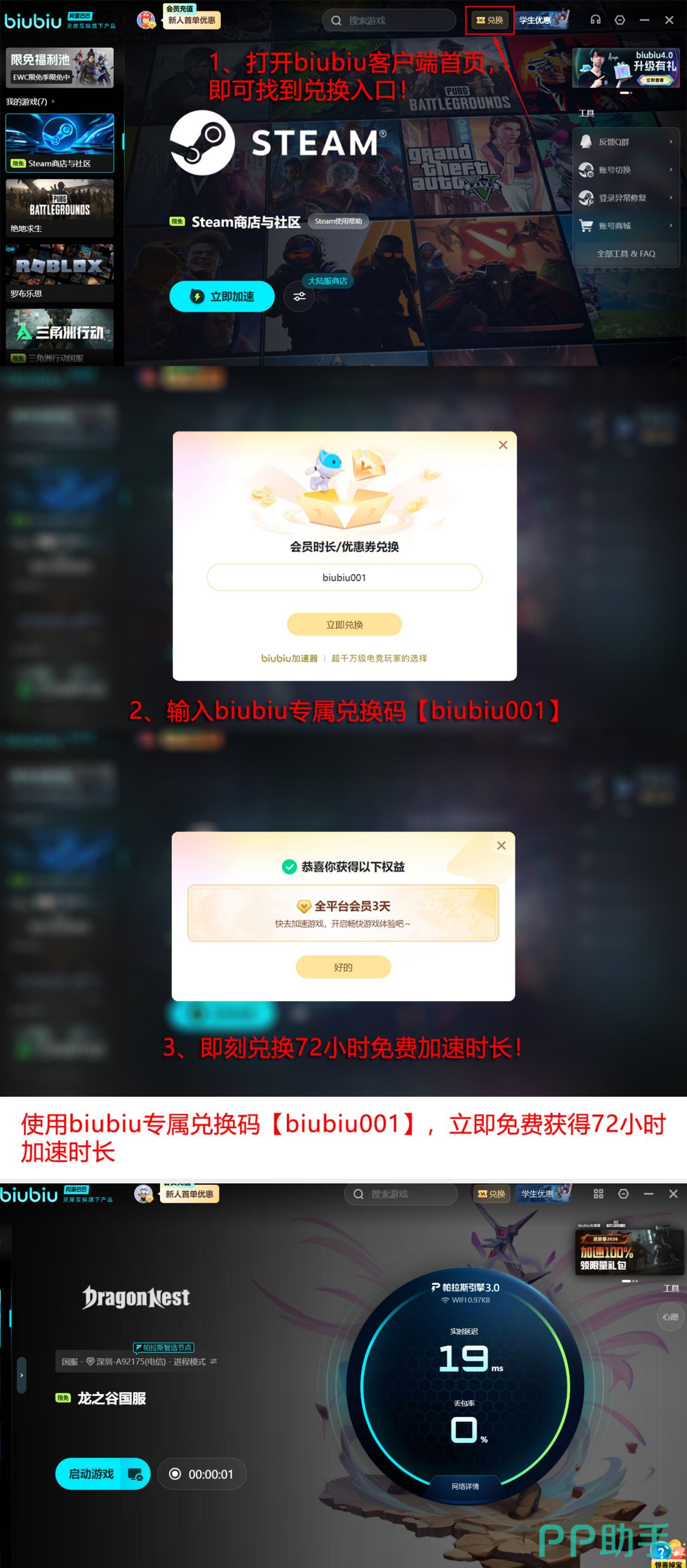 在强调操作精度与战术配合的电竞化游戏生态中,网络工具的专业性日益关键。biubiu加速器由阿里巴巴灵犀互娱研发,与九游、交易猫同属其旗下核心产品矩阵,搭载自研帕拉斯3.0智能加速引擎,并被pero战队列为日常训练指定辅助工具。现面向所有用户开放限时福利:输入激活口令【biubiu001】即可获得免费加速权益,新注册用户额外获赠24小时基础时长,叠加后总计可享96个小时的无限制加速服务,覆盖完整新手适应期与中期副本攻坚阶段。