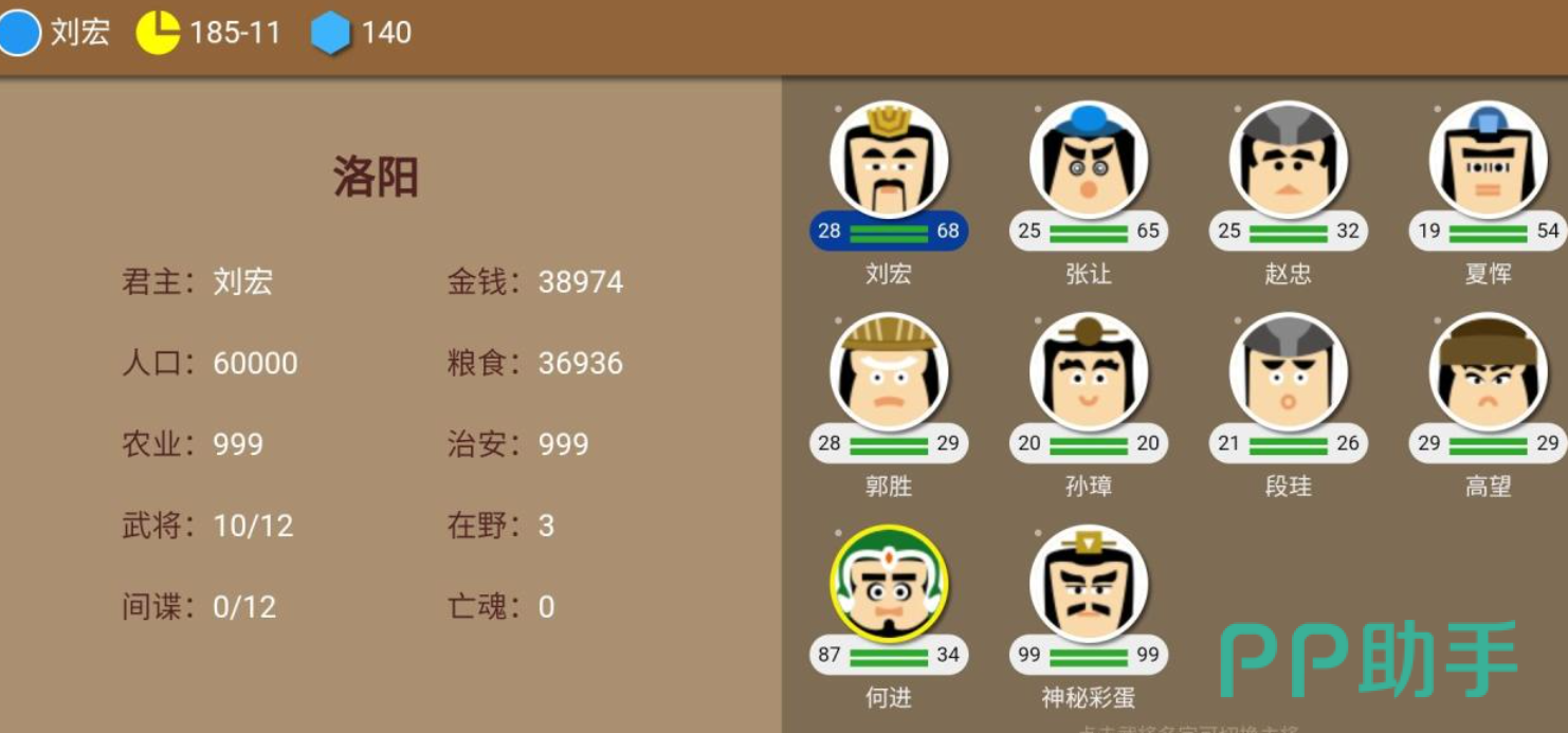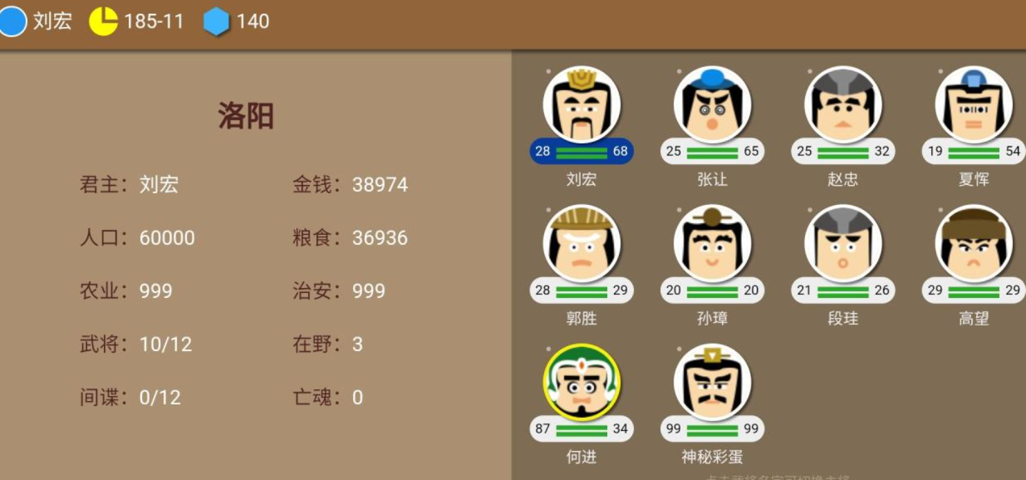 抽象化美术风格的策略模拟游戏,采用2D卡通沙盘地图,角色头像设计极富辨识度。核心玩法围绕城池建设、军队训练与跨区域征伐展开,战术维度涵盖粮草调度、士气管理与地形加成。整体调性诙谐不失策略厚度,上手易、精通难。