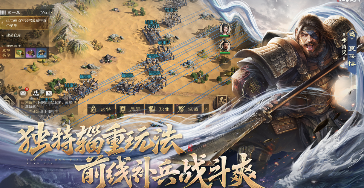 硬核RTS向策略手游,强调实时排兵布阵与多线战场调度。地图采用大世界沙盘结构,城池攻防、资源争夺、联盟协作等要素有机融合。战役内容严格对标三国史实脉络,支持多人同屏协同作战,战术容错率低,决策权重高。