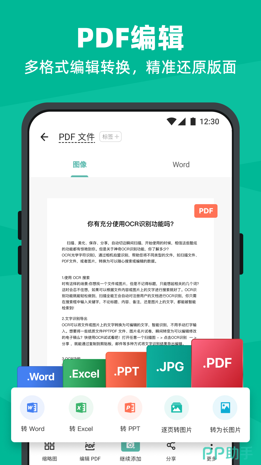 把纸质文件用手机一拍就能变成PDF或图片,扫描全能王会自动裁边提亮。更省心的是,生成的文档可以直接在App里转成可编辑的Word,进行修改、合并,最后加上签名,几个步骤在一个手机App上就能完成。