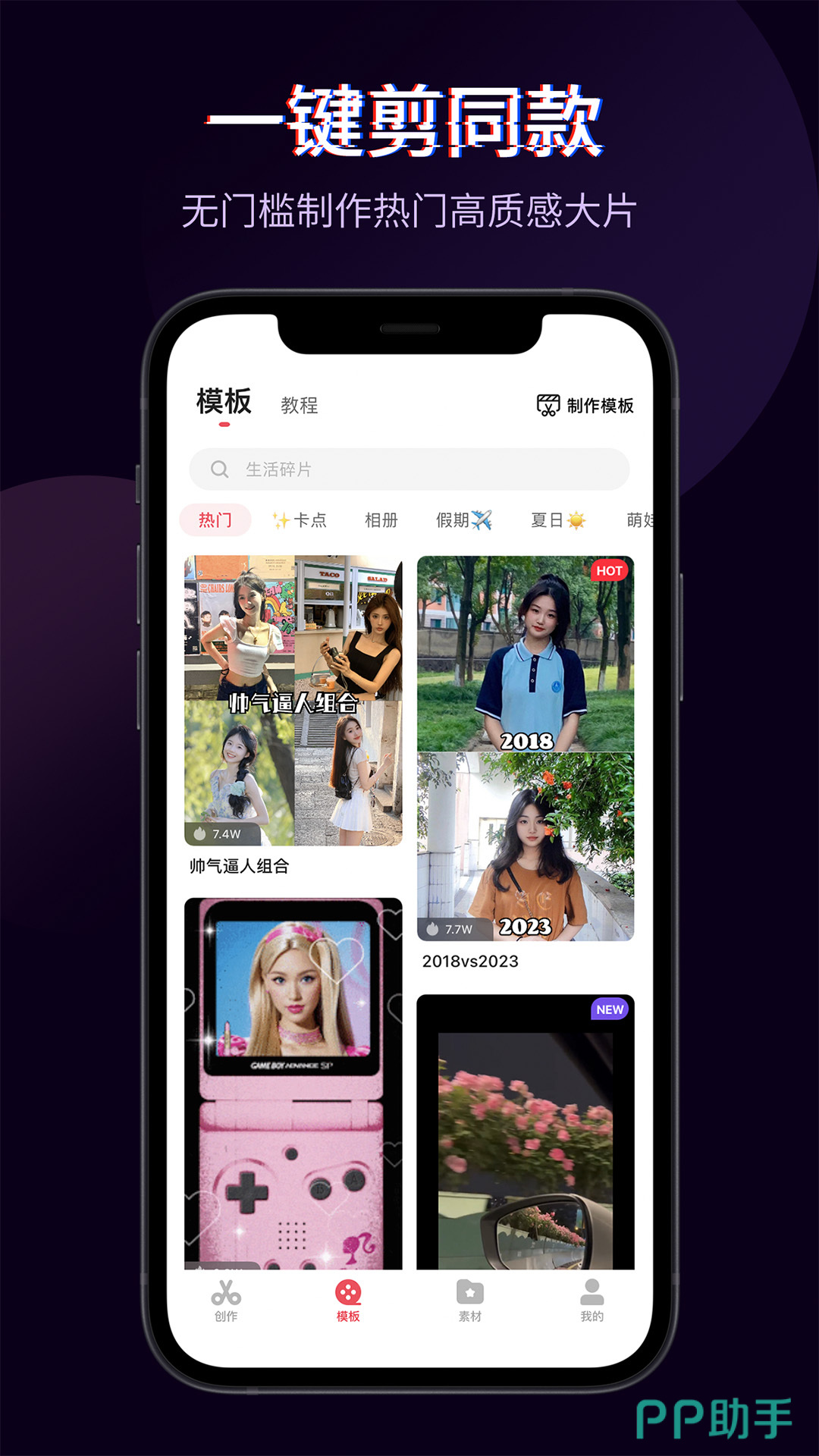 这款App提供了大量风格化的一键同款模板,你只需要导入照片或视频,就能自动生成带有特效、转场和背景音乐的完整短片。虽然功能有一点局限,但对于想快速制作旅游纪念、生日祝福等短片的新手来说,非常省心。