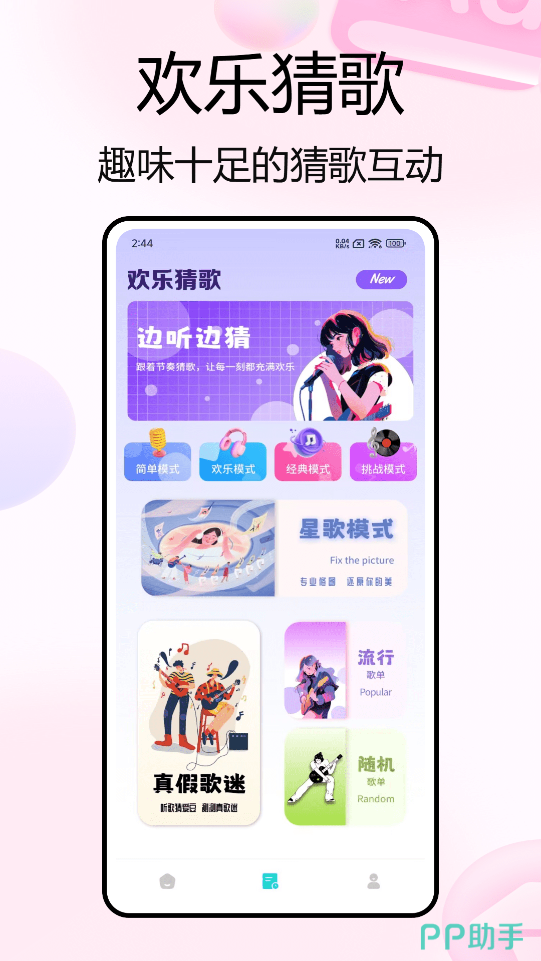 在这里既能够实现唱歌娱乐,又可以进行交友互动。如果喜欢唱歌,可以直接在这里参与玩各种小游戏,热热闹闹一起锻炼技术。还可以和喜欢的人一起组团进行PK,即使在深夜的时候,也可以找到有愿意倾听的观众。表现特别好的甚至有机会被俱乐部签约。