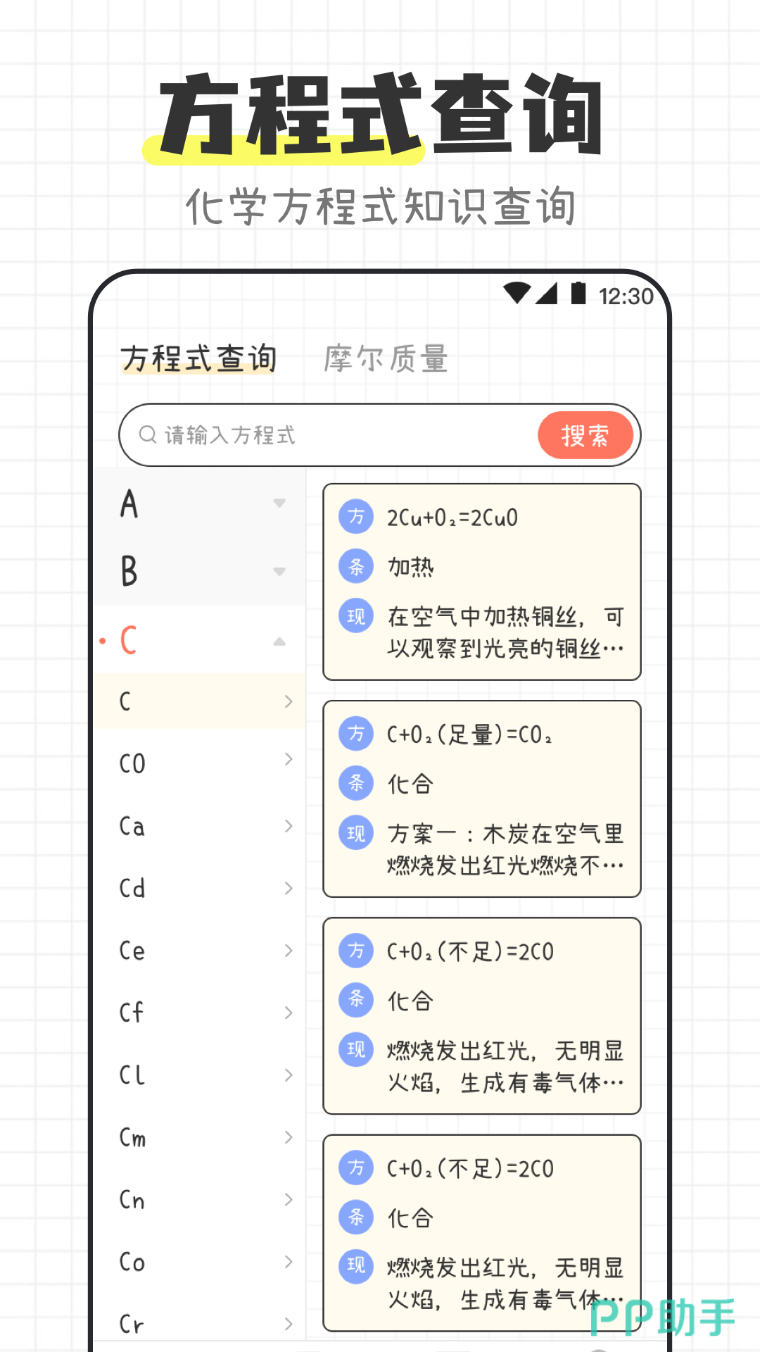 利用软件自带的功能,可以帮助大家轻松开启化学实验室的科学之旅。这里提供了各种基础的化学方程式方便随时使用,还有元素周期表以及实验注意事项等。精心推荐的各种知识能扫除学习障碍,让化学学习变得更加高效。