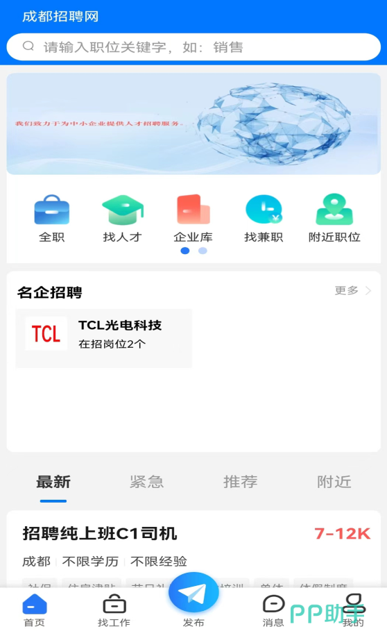 适用于成都本地的招聘、求职网站,汇总平台信息公开透明,各种求职动态每天几万条的更新,对双方来说能得到的机遇更多,平台提供的信息对,还有AI辅助根据个人账号情况来进行APP推荐,拥有足够良好的求职环境,不定时还会有线下的招聘会。