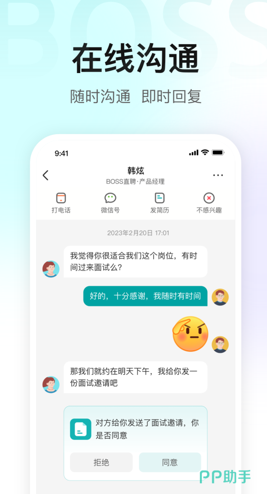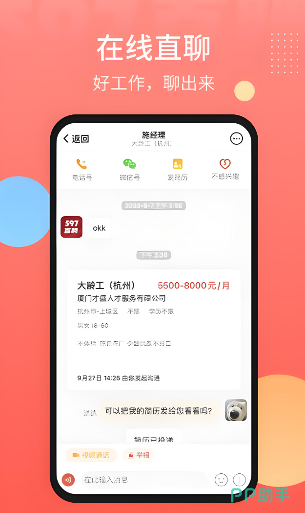 在这里聊天谈工作都是对接的HR或是老板,首先在标签中就能看到对方在公司的身份,没有中介辅助,全都是和公司直聊,对公司招聘来说能得到更多的求职者投递,平台深耕多年以来有着极强的影响力和流量,最为独特的创新沟通模式让其领先。