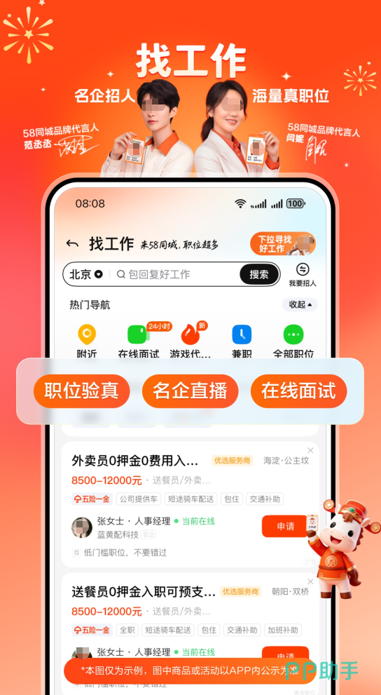 提供便民生活服务的本地平台,日活跃用户数量极高,平台影响力大名声大,吸引投递人群高,人群不固定但岗位可选择性多,能看到招聘岗位的详细信息,多达几十种的筛选项,让你提前筛掉自己不感兴趣的岗位,还能直接根据家、附近的地图找公司。