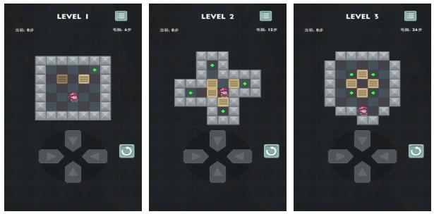 游戏的关卡设计的非常用心,每一关都有不同的思路,里面有很多有意思的解谜内容,主要的玩法就是把场景里面的箱子推到指定的位置,让每一个箱子都放到正确的位置,才算完成任务。规则很听起来似乎很容易,但真正玩起来却非常的困难,不只是靠蛮力去推,还需要讲究顺序和思路,需要提前规划好各种路线。