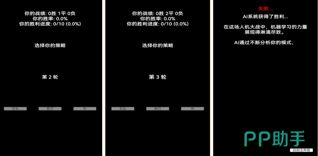 本作是款可以跟AI进行互动的猜拳模拟类游戏,自定义选择手势的猜拳设定让人百玩不腻,与AI系统完成公平猜拳对抗的过程刺激性也不错,手势都是随机生成带来的对抗性丝毫不差,人机大战的猜拳概念随机性拉满,更有简约的美术表现让游戏辨识度更高,猜拳方面的专家敢不敢接受AI的挑战?