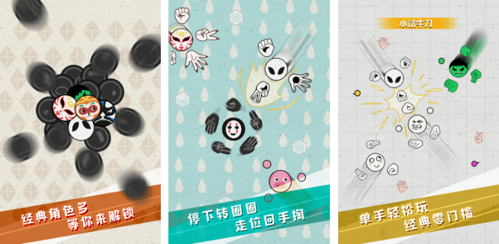 石頭剪刀布这款高互动性竞技类游戏采用了上帝视角,角色的造型都是石头剪刀布的形象,你可以扮演不同的手势在地图上对抗形形色色的敌人,竞技对抗类的玩法刺激性拉满,满屏幕的手势在一起互动战斗的画面充满喜感,游戏设定了特殊的交互竞技机制,需要两个玩家互相碰撞才能完成对抗,考验运气和微操的特殊猜拳玩法也很有意思。