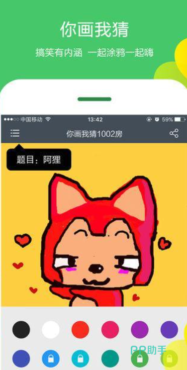 本作也是款支持联机挑战的绘画猜谜休闲小游戏,绘画猜谜为主题的基础玩法玩起来也较为烧脑,而且这款APP提供的绘画道具也应有尽有,玩家可根据任务提示作画然后让其他的玩家猜谜,很有意境的绘画气氛让许多绘画高手沉浸其中,生动明亮的背景刻画让无数绘画游戏高手越玩越上头。