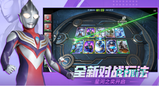 集结从昭和到新生代数百位奥特角色,有赛罗迪迦等,还有超级丰富,我们很熟悉。的明星怪兽,所有玩家都能自由组建战队,采用无属性装备差异的pvp模式,通过3d高清建模高度还原经典剧情,玩家组队挑战副本,完成传奇任务,免费获得稀有度极高的角色。