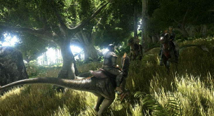 不过游戏最有意思的地方就是驯服系统。你可以把那些凶猛的恐龙,变成自己的坐骑或者宠物,这个过程需要先把它们打晕,然后喂食物,等驯服度满了就归你了,不同的恐龙有不同的用处,一些跑得快适合赶路,一些力气大能帮你搬运东西,还有的战斗力强可以保护你。游戏里还加入了很多RPG的元素,角色有等级系统,升级之后可以加属性点,比如增加血量或者负重,还能学习各种技能。建造系统也是游戏的一大特色,玩家可以收集材料建造自己的基地,从最简单的茅草屋到后面的石头房子,甚至是金属堡垒都能造出来。