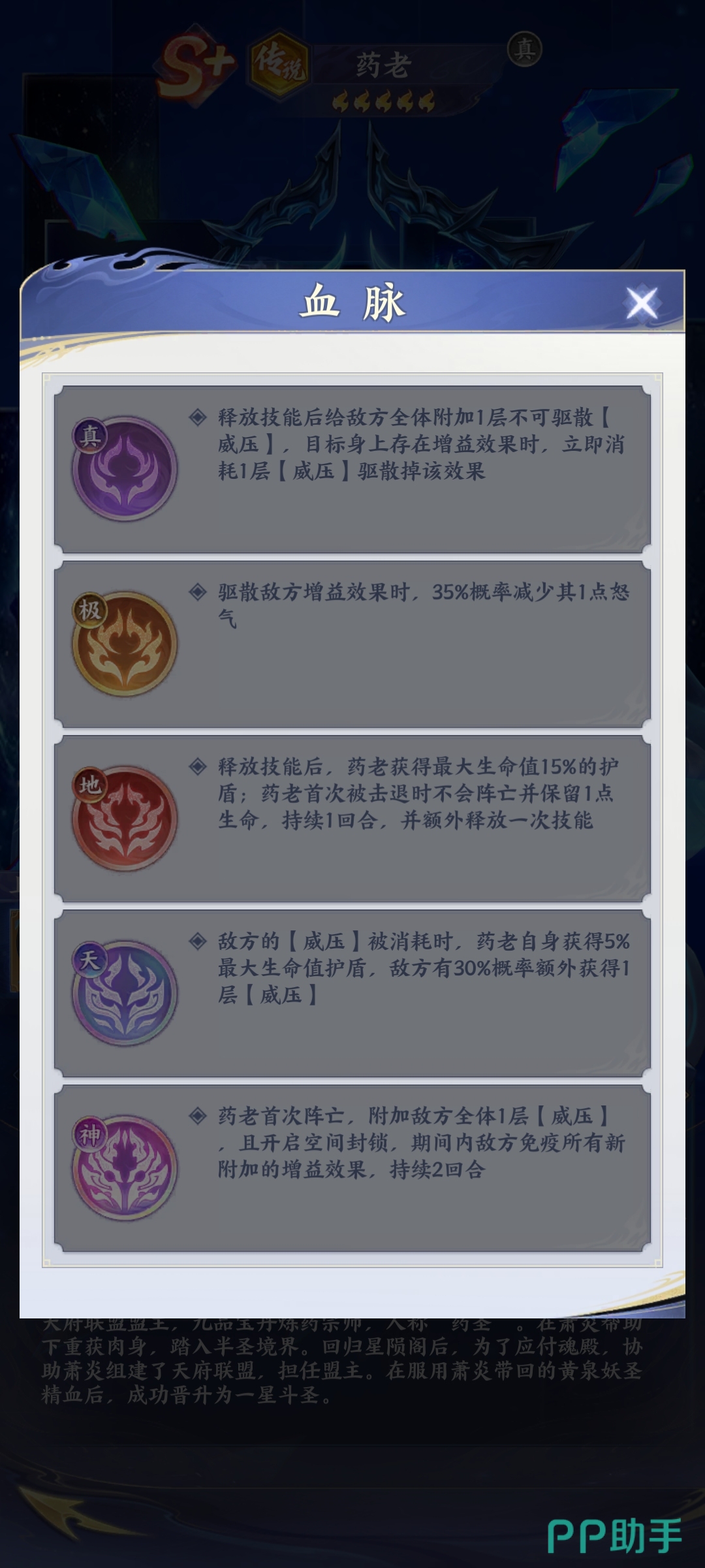 斗破苍穹传说药老的玩法就简单的分享到这里,其实药老的实力是比较强大的,对于整体的战斗节奏具有一定的掌控作用。对于玩家来说,在合理运用药老的时候就是想要让他的驱散跟控制打到最大最强。