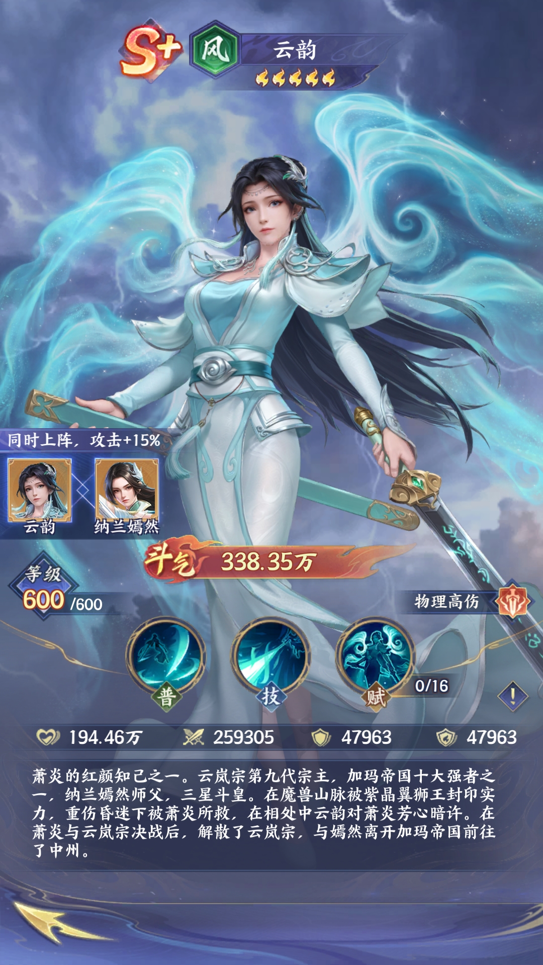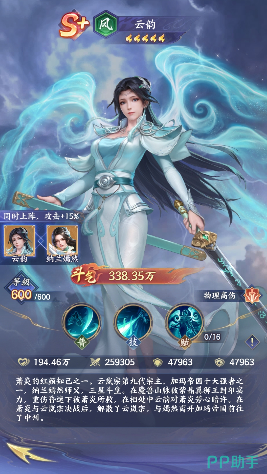 云韵(风·物理高伤):定位于物理性高伤害,技能主要是以单体爆发为主。普通攻击针对敌方单体就可以造成穿透伤害,风刹湮罡这一个技能在释放之后,就可以针对敌方的后排去完成精准的打击,然后配合天赋技能,在攻击时就能有效触发暴击。一瞬间就可以秒杀敌方的核心输出,如果和纳兰嫣然一起搭配,就可以获得15%的攻击力加成,进一步的提升输出的能力。