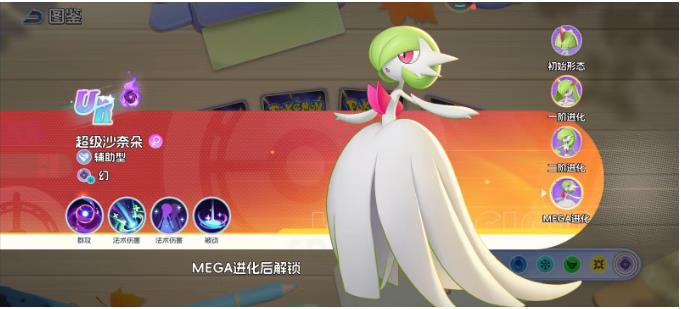 超级沙奈朵这就是最后的进化形态。从外观来看,裙摆变得比较蓬松,气质也是比较霸气的,技能伤害,辅助能力,还有控制效果都有明显的提升,会成为幻系辅助的天花板。群攻技能范围比较广泛,伤害更高,而且还可以瞬间清场。法术伤害技能还会有控制效果,可以让敌方动弹不得。被动技能的增益效果可以让队友的输出直接翻倍,在团战中就好像是一个移动的增益Buff。