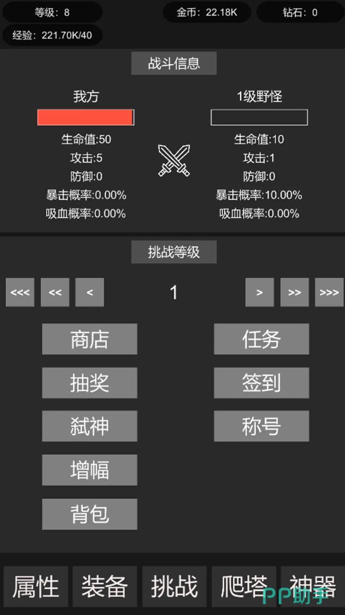 当玩家成功的兑换之后,来到了游戏世界,此时玩家将会拥有无限的潜能。这时候他们在战斗时,不管是面对的是小怪物群潮还是999级别的大Boss。玩家此时是有机会能够触发秒杀的特效,所以在战斗的过程当中,玩家能够瞬间达到清屏的目的。另外,玩家在战斗时将会获得大量的资源,这些资源其实是帮助玩家能够提升自己实力的同时,也能够实现养成,另外,玩家如果没有过多的时间来进行体验的话,他们其实也能够选择挂机,在挂机的过程当中可以实现无限的积累。