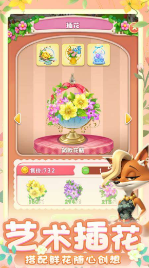 花田筑梦享自由,双端适配高便捷,模拟经营显趣味,解锁真实种植乐趣,你需要打造专属花田和小花店,种植各种花卉,同时招募员工打理店铺、招揽顾客,游戏里有玫瑰、郁金香、鸢尾花等多种花卉,玩家可自由选择种植,自由度高,能DIY温馨治愈的小花店,有30个性格、技能不同的员工可招募,还能通过明星唱歌,店铺宣传等方式吸引顾客,体验真实的花店经营和种植乐趣。