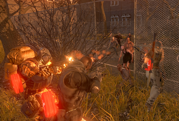 科幻废土尸横行,四人组队向前冲,并肩作战有豪情,玩家作为人类阵营的特种兵,四人组队对抗统治世界的僵尸,夺回人类的地盘,,利用地图掩体和陷阱对抗敌人,游戏有多种模式,除了四人合作副本,玩家可以升级武器威力,解锁新的战斗技能,四人配合击败巨型BOSS时,能获得强烈的成就感,科幻热血添新意,四人同战赴荣光。