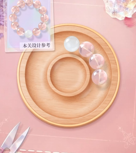 在获取到足够的珠子后,咱们就需要将珠子放到串珠盘里面。在放置的时候我们可以在左上角的图片之中找到所需要的串珠子所需要的设计和需要的珠子。