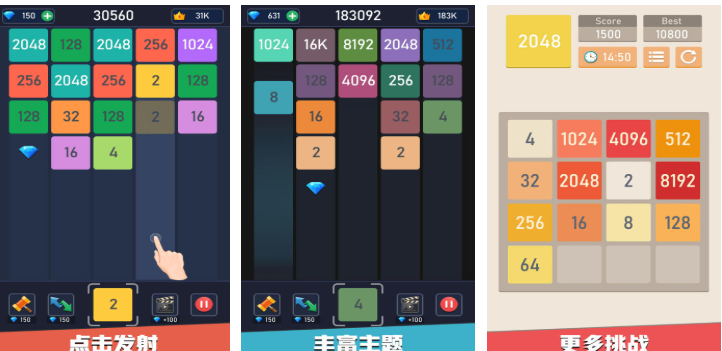 2048合成是拥有射击合成机制的2048神作,有着丰富的主题背景以及形形色色的挑战任务,发射方块进行合成的理念跟泡泡龙有点类似,玩法多种多样带来的数字解谜过程更为解压,画面呈现更是色彩鲜艳让无数画面党心驰神往,也给大家准备了多样道具带来的消除快感更胜一筹,各位2048手游高手敢不敢迎接挑战!