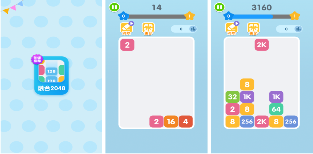 融合2048这款独立版的数字合成手游可玩性还是很高的,依旧采用的是下落式融合数字的基础设定,简单操作和绚丽的画面都是本作亮点,这款数字合成游戏并没有任何上限设定,理论上来讲玩家可以一个劲的合成数字,融合升级数字的理念参与感不错也很解压,花花绿绿的数字方块颜色也给人留下深刻印象。