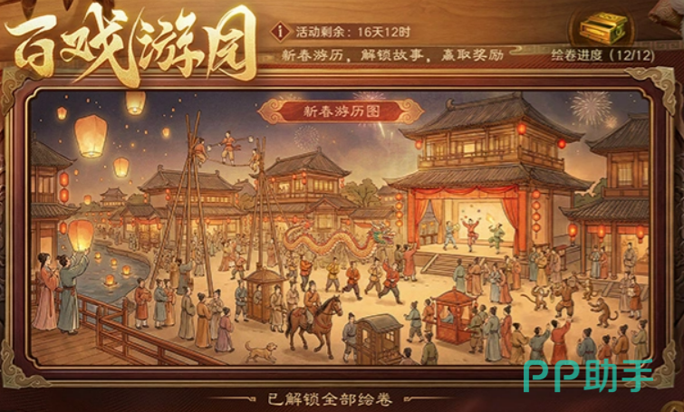 【春节白戏】为沉浸式剧情互动玩法,开放时间为2月10日至2月24日。每日0点准时解锁一段专属剧情,观看后可点亮游历拼图板块,每次点亮均可获得全服抽奖卷及福禄钱;集齐全部拼图后,还将解锁额外限定奖励,实现叙事体验与资源获取双重价值。