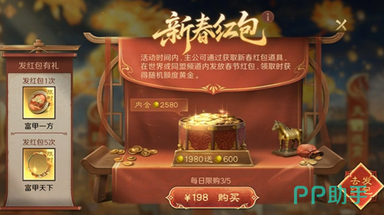 【红包系统】支持跨频道分发功能,玩家获得黄金红包或玲珑玉红包后,可在世界频道或同盟频道进行发放。发红包行为将激活限时成就徽章——“富甲一方”与“富甲天下”,该系统运营周期延长至3月24日,鼓励玩家高频互动与社区共建。