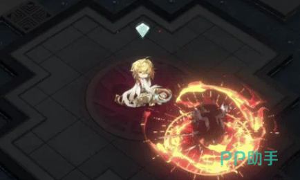 角色核心输出逻辑依托被动技能【光耀古今】展开:当处于【天时往复】状态时,若邻近格内敌人被我方其他角色攻击并受到伤害,太阳神鸟将自动消耗1枚礼弹发动追击,造成攻击力百分比的构素伤害,并叠加【灿金】层数;【灿金】叠满后,追击附带额外伤害;若此时【四季同鸣】状态仍在生效,则该追击还将扩散至受击目标周围相邻单位,形成小范围溅射效果。此机制使其在应对群聚敌人时展现出极高的单位时间输出密度。