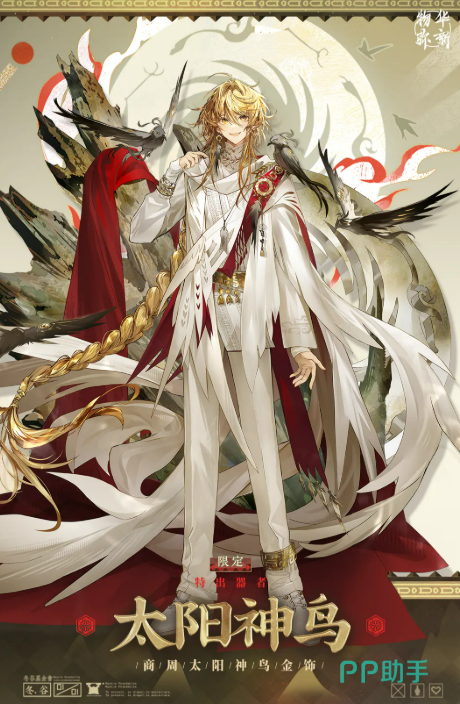 今日为大家深度解析《物华弥新》中人气角色——太阳神鸟。该角色以成都金沙遗址出土的“太阳神鸟金饰”为原型,巧妙融合中华文明符号与现代二次元审美,设计为金发金瞳的青年形象,并赋予其召唤上古神兽金乌的能力,文化辨识度与视觉表现力兼具。