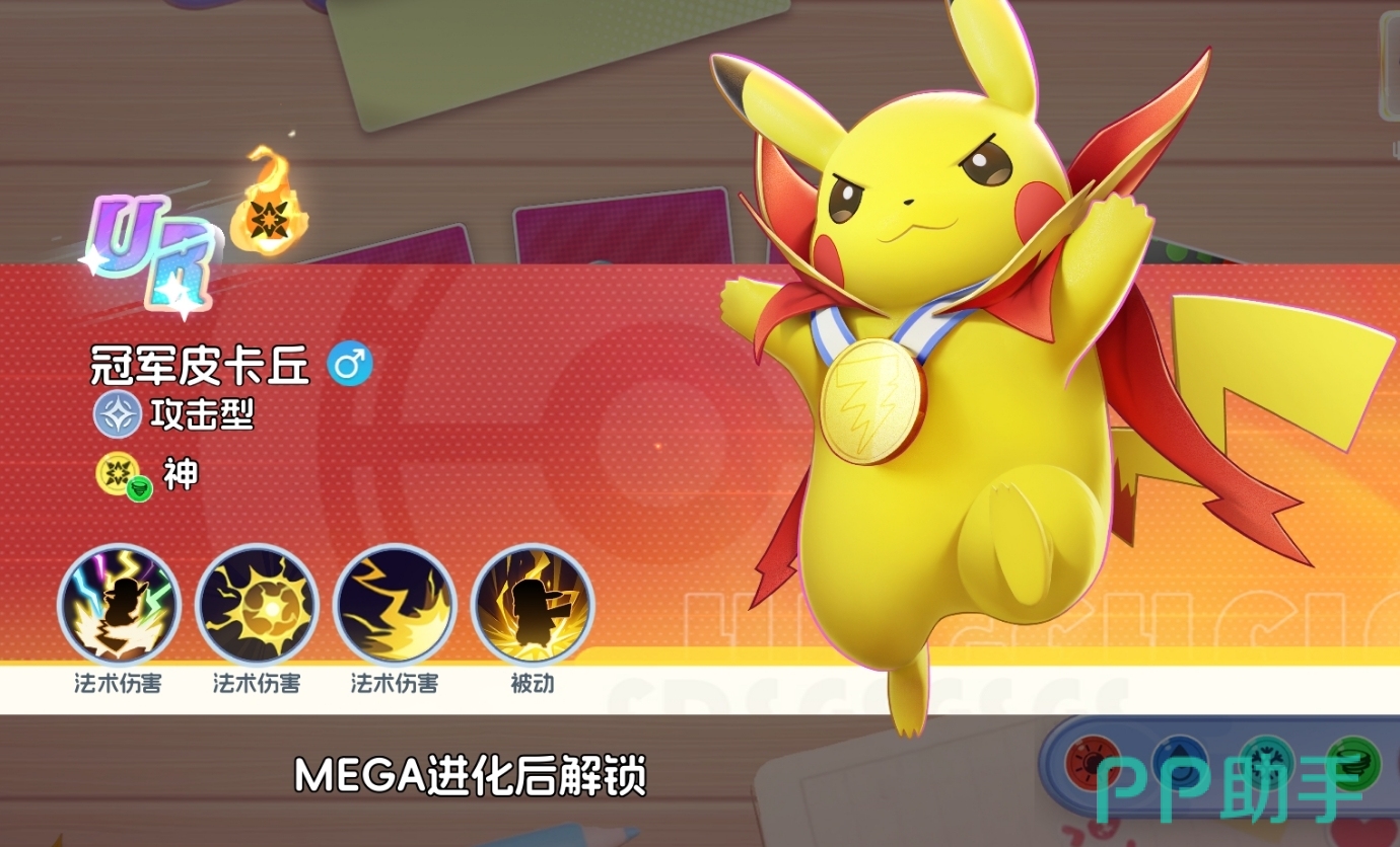 冠军皮卡丘是帽子皮卡丘的UR稀有形态,无法通过常规抽卡或活动直接获取,必须经由帽子皮卡丘完成特定进阶与MEGA进化流程方可解锁。作为《宠物集结》中宠物图鉴里品级顶尖的战力单位之一,其综合战斗表现极为突出,尤其在持续输出、控制衔接与濒死反打方面具备显著优势。本文将系统梳理冠军皮卡丘的获取路径,并提供清晰可行的养成路线规划,帮助玩家规避资源浪费,高效构建高配阵容。