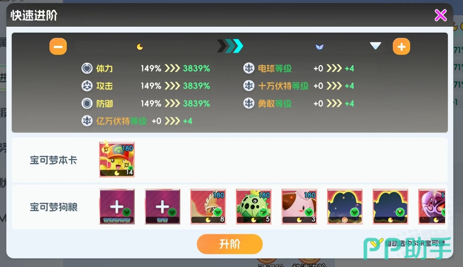 获取冠军皮卡丘的前提,是先将帽子皮卡丘提升至月亮1阶起始状态,并完成总计16次升阶操作,以满足MEGA进化的前置门槛。该过程对素材需求量较大:建议至少储备14只帽子皮卡丘本体作为升阶核心材料;同时需搭配风阵营宝可梦参与升阶,若风系角色数量不足,允许使用通用升阶素材进行补足。升阶完成后,玩家需前往游戏内“MEGA兑换商店”,消耗1张MEGA进化卡即可触发首次进化,使帽子皮卡丘正式蜕变为UR品质的冠军皮卡丘。此后,还可持续投入MEGA进化卡,逐阶提升其MEGA等级,强化技能效果与生存能力。