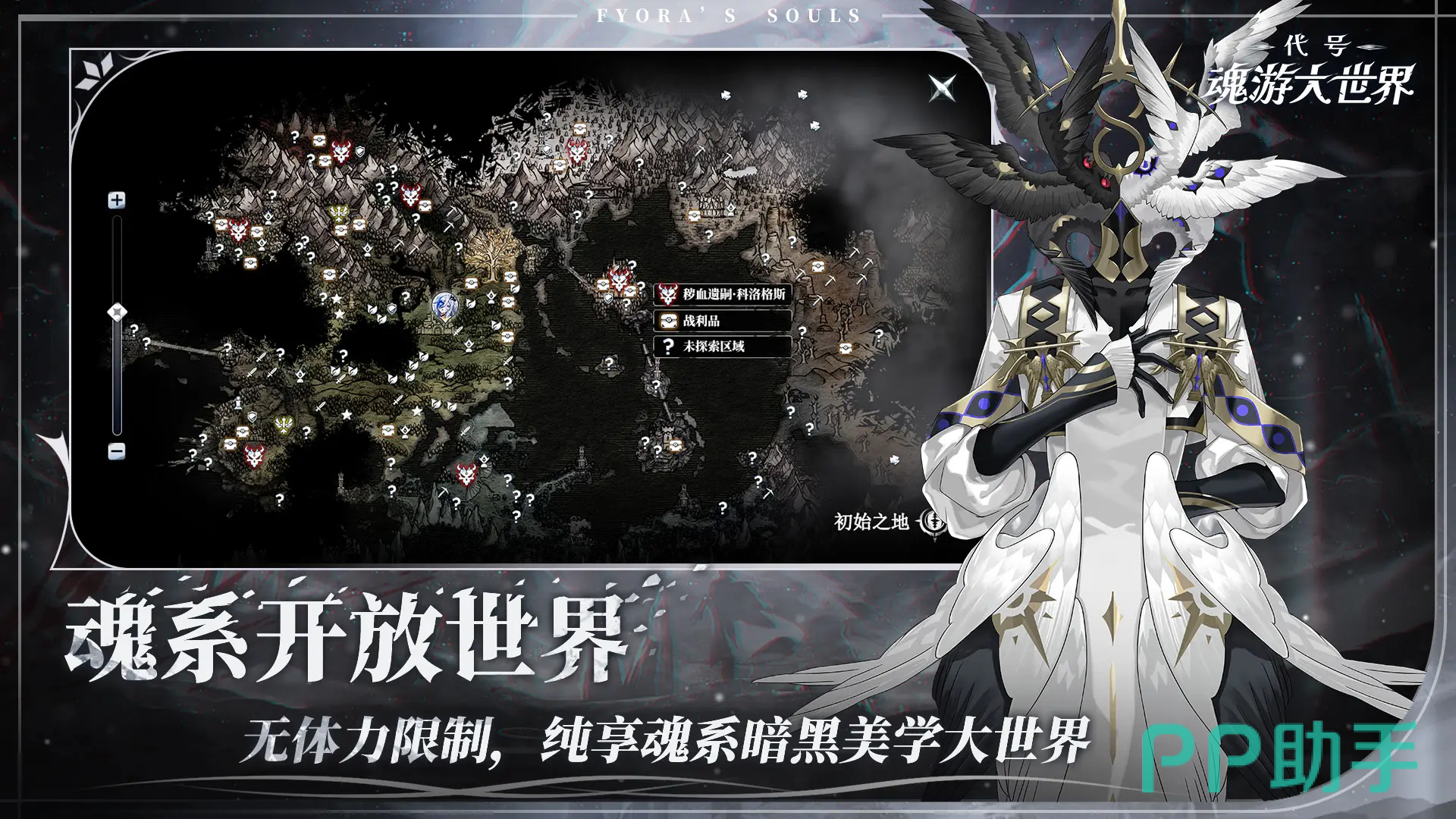 《代号:魂游大世界》是一款融合硬核魂系战斗机制与高沉浸感美少女叙事的开放世界手游。游戏构建于名为“终焉地”的宏大衰败世界——这里曾因神明内战而崩解,如今呈现为16张风格迥异、无缝衔接的探索区域。玩家将扮演“谒魂者”,在广袤地图中自由穿行,通过实际探索获取武器、道具与成长资源,全程不依赖抽卡或付费商城,真正实现“探索即成长”的核心体验。