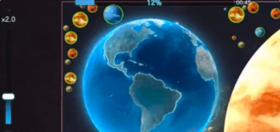 物理规则驱动吞并行为:当球体接近体积小于自身的天体时,系统自动触发引力捕获效果,目标将沿最短路径被吸附融合,主体质量同步增长;反之,若遭遇体积超限的对手,则需立即规避——生存关键在于实时预判相对尺寸并维持安全距离。
