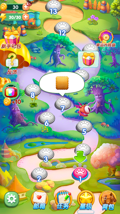 构建幻想大陆世界观,融合收集、探索与家园建设多重玩法。地图中散落超2000种稀有宝物,隐藏上百只个性精灵待发现。核心消除机制服务于“净化黑暗区域”主线,玩家通过连续消除恢复家园生态,逐步解锁个性化装饰模块,沉浸感强且成长路径清晰。