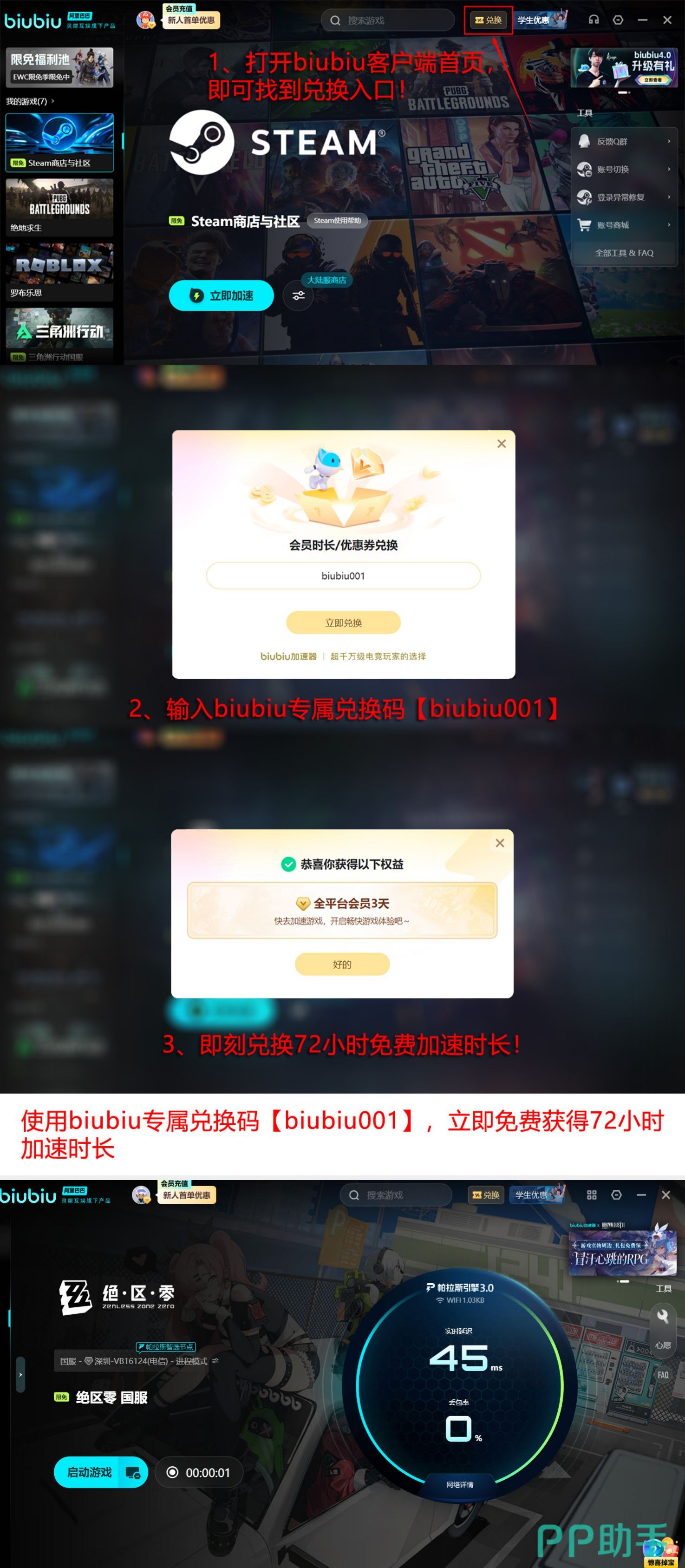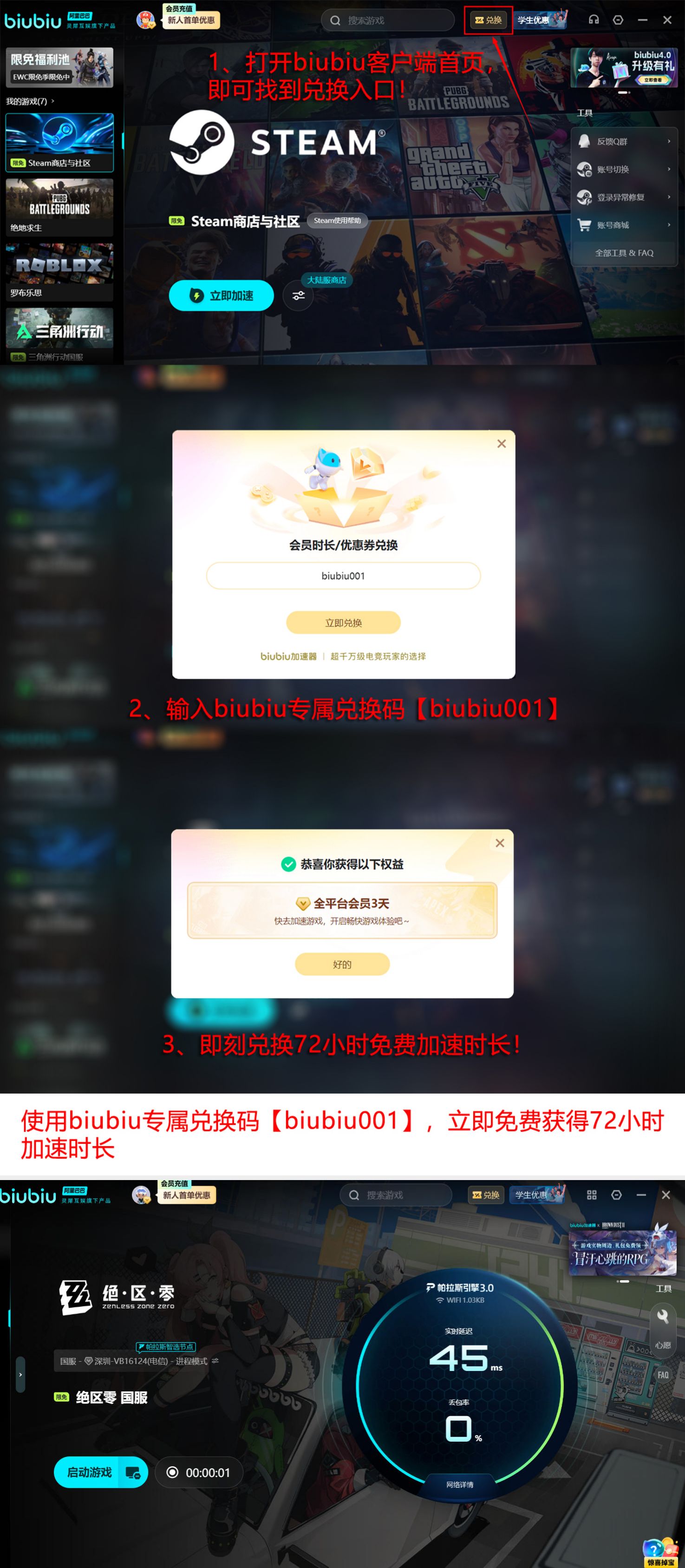 该加速器由阿里巴巴灵犀互娱旗下技术团队深度优化,底层依托九游、交易猫与biubiu加速器三大产品协同研发能力,集成帕拉斯3.0引擎适配模块,并经Pero战队等职业电竞队伍长期实战验证,成为其日常训练指定网络辅助工具。为便于广大玩家快速体验,现开放限时福利:输入口令【biubiu001】即可免费获取三日全游戏加速权限;新用户完成注册并登录后,额外获赠24小时加速时长,累计可达96小时无缝使用体验。