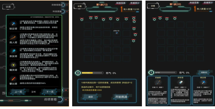 贯彻“少即是多”设计理念,采用极简主义美术风格,界面无冗余元素,操作逻辑直观高效。所有防御单位以几何图形抽象呈现,升级路径清晰可见。粒子特效在简约底色下尤为突出,形成独特视觉记忆点。虽仅保留基础塔防框架,但通过精准的数值平衡与节奏控制,实现远超表象的策略纵深。