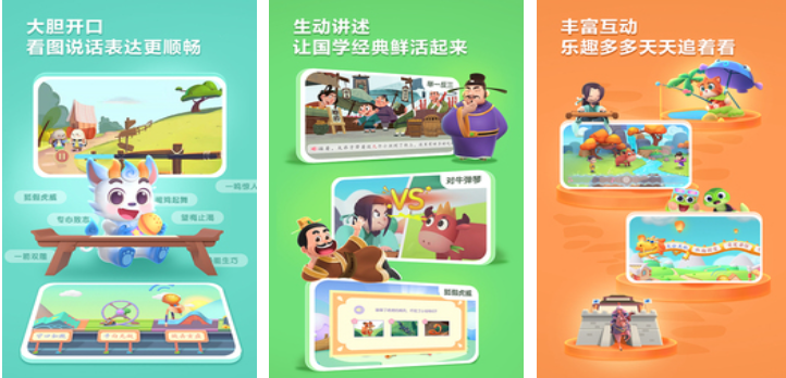 由洪恩教育研发的儿童向成语启蒙应用,采用故事化教学路径,将成语嵌入历史小剧场、生活情景剧等叙事模块中。交互设计强调触控反馈与语音伴读,配套动画演示成语含义,符合低龄用户认知发展规律。