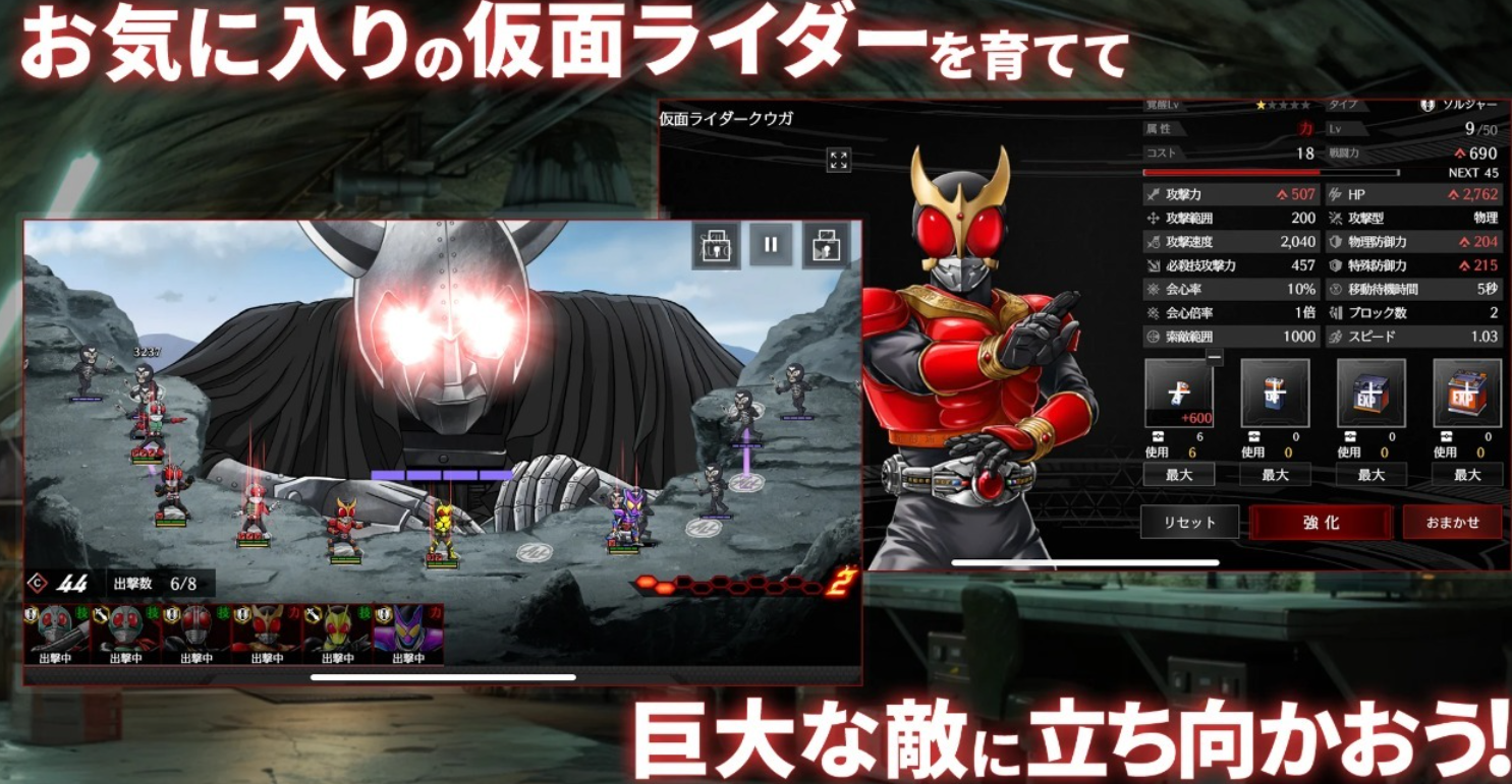 以平成开山之作《假面骑士空我》为原型的横版格斗手游。空我五形态与亚极陀四形态均实装,形态切换消耗能量值设定与原作完全一致。攻击判定框精度达0.5像素,受击硬直时间按角色体重参数动态调整。