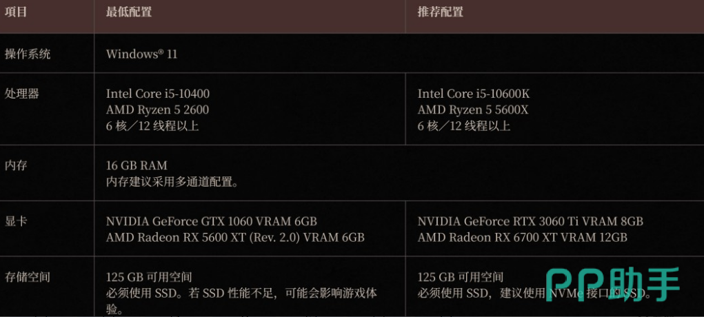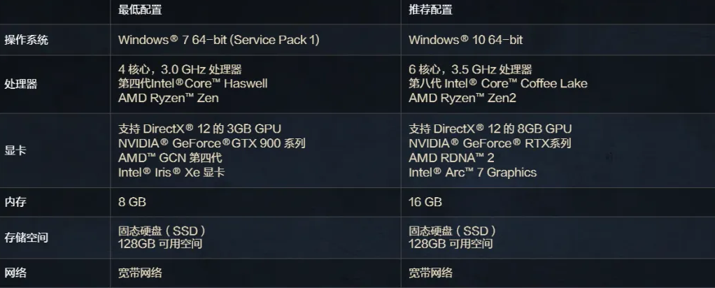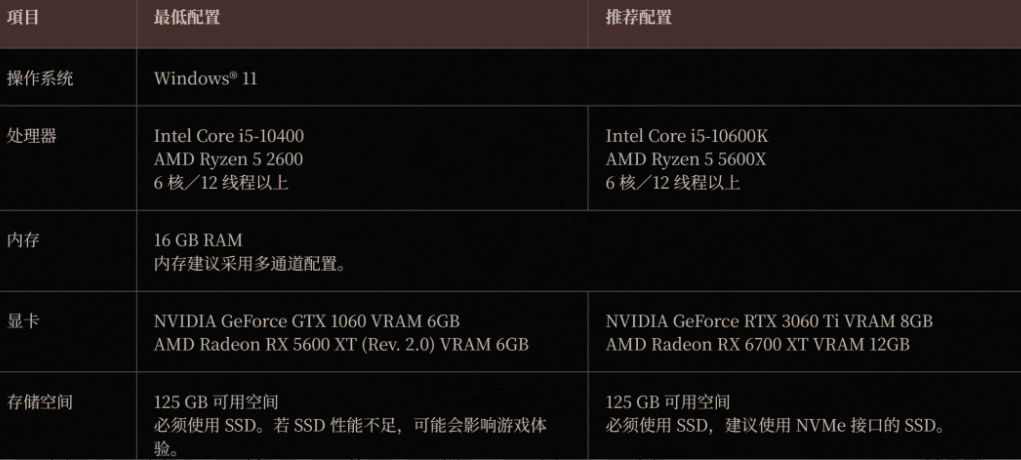 内存容量不得低于16GB DDR4,安装所需硬盘空间为125GB SSD(推荐NVMe协议),在此配置下可稳定达成1080P分辨率+30帧率目标,并支持升频技术与帧生成(Frame Generation)功能,进一步提升动作响应顺滑度。