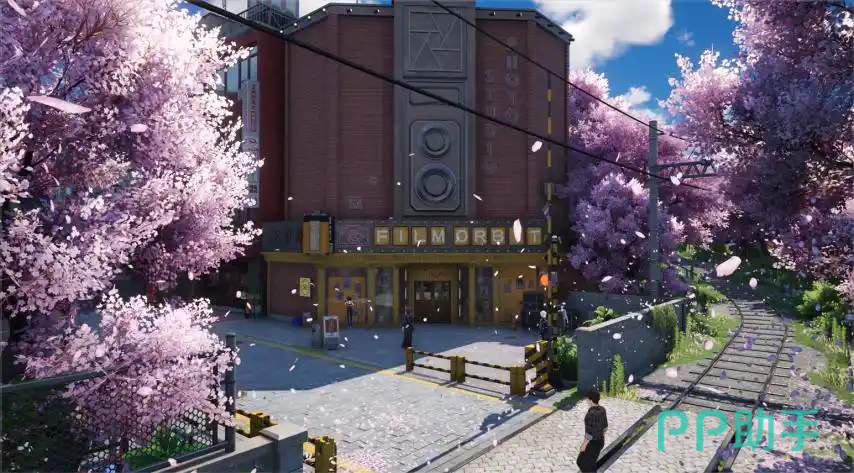 在画面上游戏中不仅采用了能够衬托场景更为现实的写实风格以外,更是有着写意元素的衬托,比如说玩家在车站这里可以看到盛开的樱花,风吹过时,樱花就会犹如下雨一下落下,粉色的花边直接把车站和铁轨给铺满,显得画面更加的唯美梦幻。