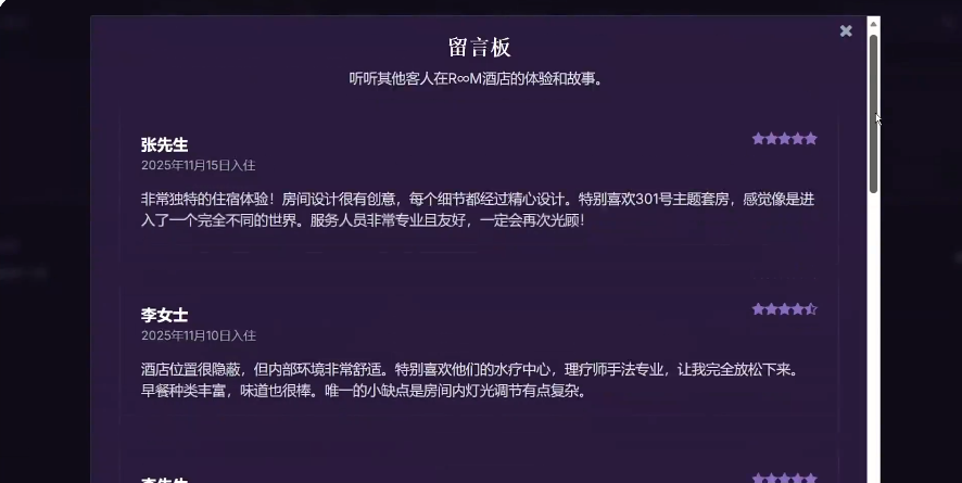 入职到room酒店之中,大家的主要工作,简单来说,就是窥探,推理,抉择。扩充来说,需要在模拟现实的酒店网页中,搜集信息,并推理线索,一步步看到更多页面和信息。
