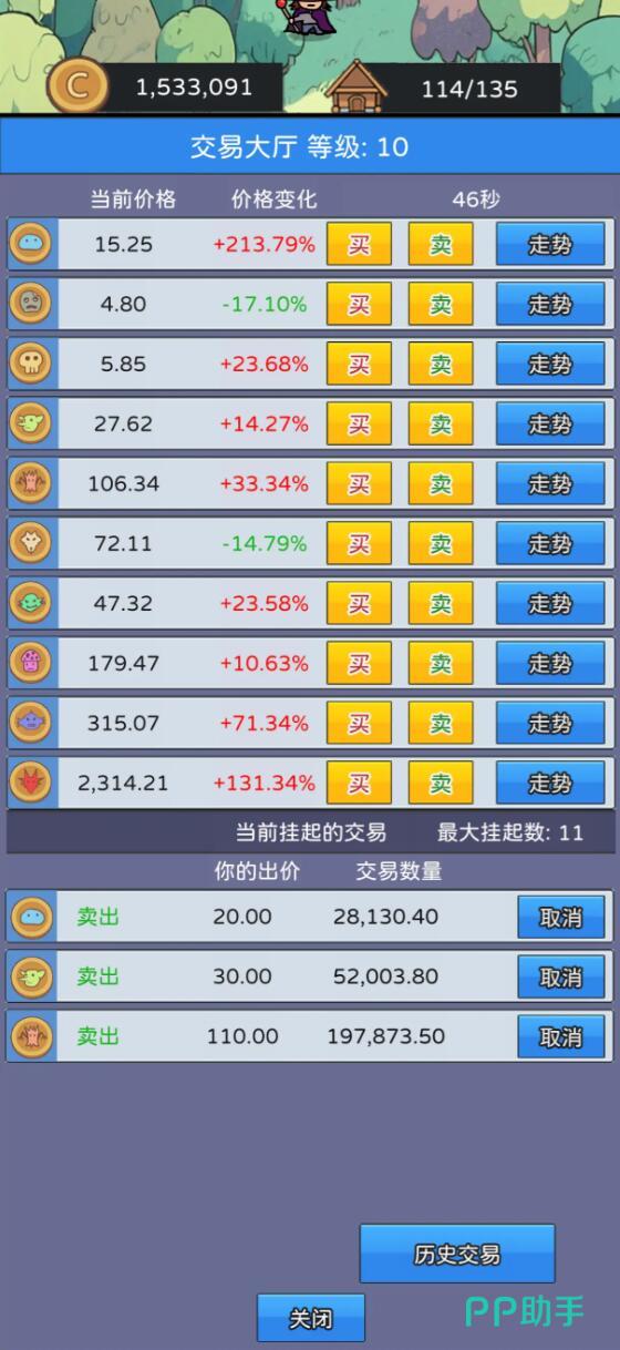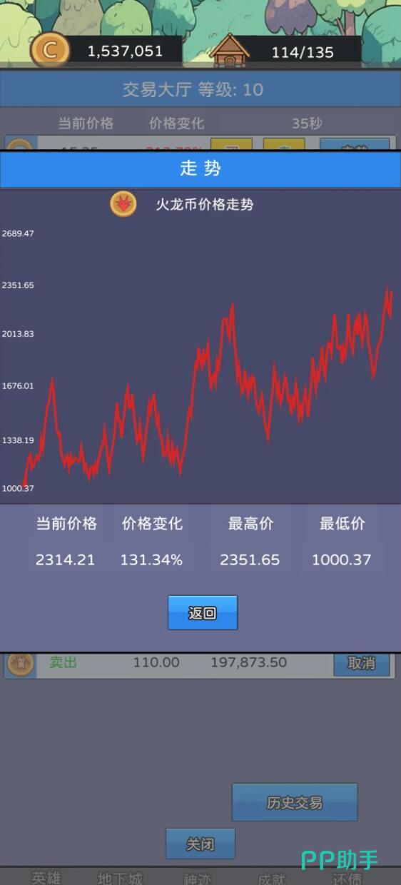 游戏中不存在价格黑箱,所有交易数据均公开可查。玩家可通过行情面板实时监控各币种涨跌趋势,结合短周期波动规律执行低吸高抛操作;同时,系统支持挂机收益机制,满足不同节奏偏好——既适配高频交易型用户,也兼顾休闲经营需求。值得注意的是,部分货币存在涨停限制,该机制由算法自动触发,与单次交易量、历史成交密度及随机事件权重直接关联。