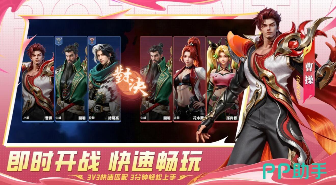 游戏规则简洁明了,聚焦3v3街头对抗本质,弱化繁复数值与养成门槛。每位历史武将均拥有独立背景设定与差异化技能体系,例如关羽侧重力量压制,貂蝉偏向灵活位移与控场,玩家可根据战术偏好自由搭配阵容。新用户登录即可领取成长礼包,并可通过“新手招募”“群雄召集”等活动快速获取高稀有度武将,全程无需付费投入即可组建主力阵容。