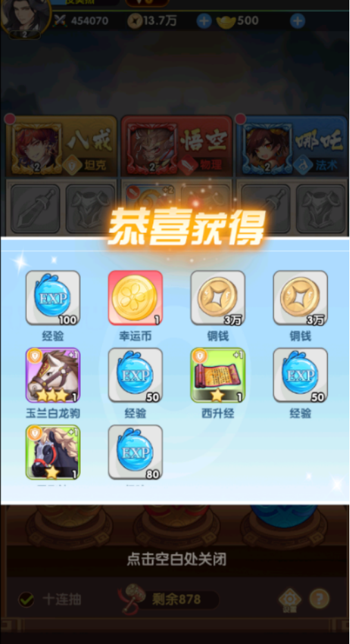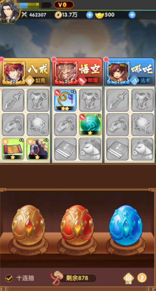 这游戏主打的就是放置的玩法,用碎片化的时间就能躺平体验,离线时也可获得丰厚的金币奖励,开局后屏幕正中央就会呈现出三颗不同的金蛋,而这些金蛋是分别对应于不同的职业,比如有坦克或者是物理等等。当敲击金蛋之后,会获得大量的经验值或者是很多稀有资源,致力于全面提升自身的战斗实力和等级。