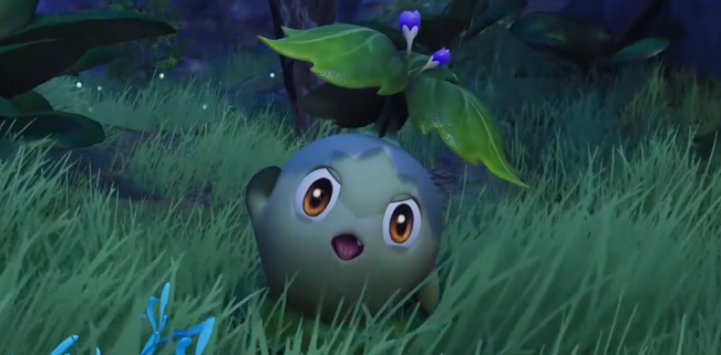 沿着石庙继续往左边走,就能遇到闪电貂了。这个比较简单,看到了直接上去打一架,打完就可以抓了。然后继续往前走,快到悬崖边上的时候注意看,会有两棵特别大的树,树前面有荧粉蝶。这个宠物全身是那种透明的蓝色,走近了就很明显了。