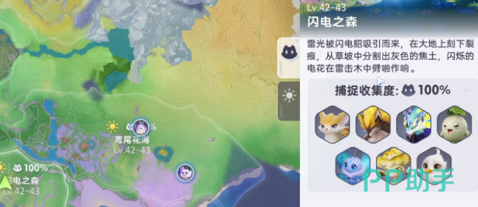 其实闪电之森的位置还算比较好找的,就在整个大地图的下面那一块,靠着海边有一大片绿色的平原地带,只要等级到了42级就能过去了。走调草这个宠物是在闪电之森上面那一带出现的,长得有点像个绿色的萝卜,头顶上面还长着五片叶子,叶子中间开着紫色的小花朵。虽然说它也是绿色的,但是跟周围的草地颜色还是有点不一样,仔细看的话应该能发现。玩家到了那个区域之后多走走转转,基本上就能碰到了。