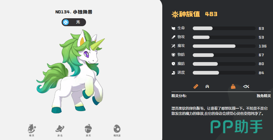 第三个就是小独角兽,也是在种族值的魔法攻击数值当中最高的一个精灵,他身上目前基础的魔攻数值是达到了136点的,所以很多以魔攻为主要输出方式的队伍当中,大家都会用到小独角兽,这里他上阵的话大家要注意配队当中光系是更适合配队的,他自身是一个光属性的精灵,在特性效果上面大家也要多关注一下选择的技能组合,在配招的时候大家就要注意,在小独角兽使用的各类技能当中,只有使用非光系的技能时才可以提升25%的威力,所以后期在上阵的效果上面大家就要避免给他搭配同类的技能效果,才可以提升小独角兽的魔攻属性哦,其次就是雪影娃娃也是很适合当做魔攻核心角色用的,他基础的魔攻数值也有132点,虽然比小独角兽低,但是目前也没有比他基础魔攻数值还高的精灵了。